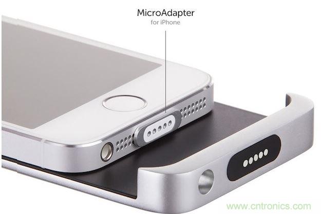 使用像MagSafe 一樣的連接線時,事先將被稱為MicroAdapter的小型配適器插入iPhone的Lightning端口。為了使充電用的Lightning連接線可以實現正常充電,通過使用配有MagAdapter的磁石連接口來連接實現充電。這是原創設計所以不能說該產品使用了便攜式MacBook的充電連接線。