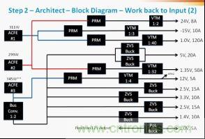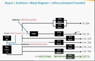 雖然完全令人滿意,但這種方法可能會(huì)變得有點(diǎn)單調(diào)乏味。為了簡(jiǎn)化設(shè)計(jì)流程和節(jié)省時(shí)間,Vicor最近推出了PowerBench白板工具(whiteboard)。白板工具是利用一組合適的Vicor電源轉(zhuǎn)換元件設(shè)計(jì)和分析電源系統(tǒng)的一個(gè)在線工具。利用白板工具就不再需要查看包含在數(shù)據(jù)表中的運(yùn)行和效率參數(shù),工程師只需利用在線工具繪制出電路框圖,所有計(jì)算即可在幾毫秒內(nèi)完成。