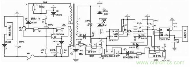 本文設(shè)計中采用16 個光伏電池串聯(lián),組成電壓約為1218V 的太陽能組件,通過采集較高多的光能,保證日照能夠使鋰電池完全充滿電。供電網(wǎng)絡(luò)設(shè)計電路采用正激式拓撲結(jié)構(gòu)[ 1 ] 。具體電路如圖2 所示。
