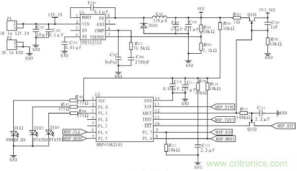 本文通過增加TI的MSP430低功耗MCU配合BQ500410A來實現系統的低功耗。為了實現低功耗,一種最直接的方法是無負載時直接關斷電源使BQ50041A 完全關機。但是這樣做的話,包括充電狀態、錯誤狀態、操作模式及驅動引腳狀態信息等將會完全丟失。增加MSP430 后,BQ500410A 可以周期性的關機來節節省功耗,其喚醒信號由MSP430 來提供。同時,各種狀態信息也由MSP430 來保存,LED 狀態指示燈也由原先的BQ500410A 驅動變為由MSP430 來驅動。如此一來,雖然系統的復雜度及成本提高了, 但是待機功耗由原先的300 mW 降低到90 mW 左右。