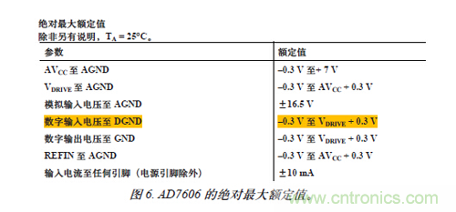 圖6. AD7606 的絕對最大額定值