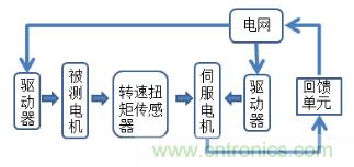 伺服電機可以進行電機對拖,公共直流母線采用單獨的整流/回饋裝置,為系統提供電能,調速用逆變器直接掛接在直流母線上,當系統工作在電動狀態時,逆變器從母線上獲取電能;當負載被被測電機反向拖動的時候,伺服電機將會變成發電機,能量通過母線及回饋裝置直接回饋給電網,以達到節能、提高設備運行可靠性等目的。
