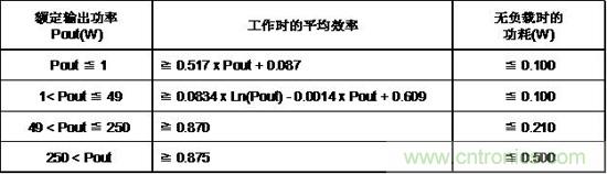 表1.DOE CEC 6級(jí)外部電源能效標(biāo)準(zhǔn)AC/DC電源(輸出電壓≧ 6V)