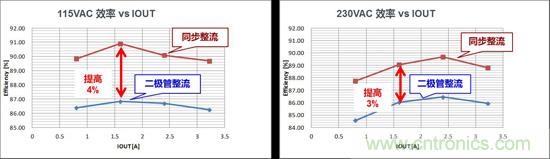 圖2.二極管整流/同步整流效率比較