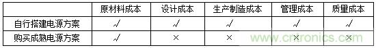 表1:電源方案成本分布