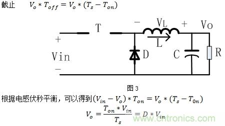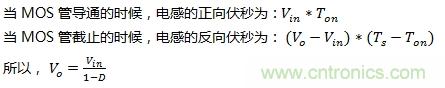 D為占空比,0<D<1,因此可以看出,輸出電壓低于輸入電壓,屬于降壓。