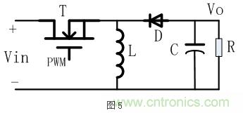 Buck-Boost電路拓撲,有時又稱為Inverting,其典型的電路結構如下圖5所示:
