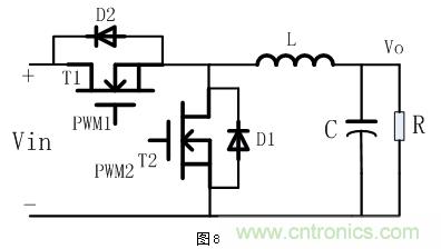 當T2管截止時,T1管與D1、L等器件構成了Buck型降壓電路,可以實現對后級的負載進行供電;反之,當T1管截止,T2管與D2二極管、L等器件構成了Boost升壓電路,對前端電源進行能量補充。目前對T1和T2管的控制以模擬方式控制相對還是比較困難,均是以數字控制方式為主。
