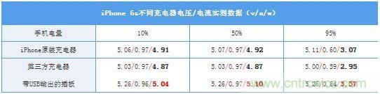 筆者使用了5款不同品牌原配的充電器+2款帶USB輸出的插板進行測試(手機50%電量),發現輸出電壓基本略微大于5v(某些線補較高的能去到5.3v,而沒有線補的低于5v),而電流也在1a左右。所以使用某些非原裝充電頭對iPhone進行充電,確實會比原裝充電頭更快。當然,山寨/品質低劣的充電器就另說了。