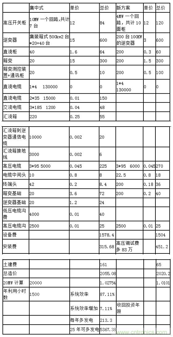 9、整體發(fā)電效率提高到87%。比普通集中式逆變器-箱變系統(tǒng)高7%。以20MW安裝容量1500年運(yùn)行小時(shí)考慮,25年可多發(fā)電5400多萬度。見下圖3