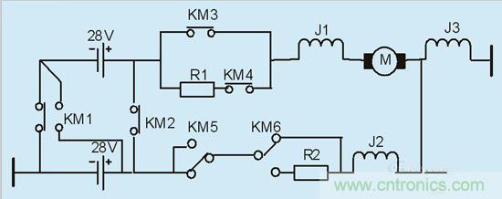 第三階段:即按下起動(dòng)按鈕后的9S~15S內(nèi),起動(dòng)電源車內(nèi)的兩組電瓶由并聯(lián)轉(zhuǎn)為串聯(lián),起動(dòng)機(jī)兩端的電壓由28V升高到56V,起動(dòng)機(jī)轉(zhuǎn)矩急劇增大,從而使渦輪轉(zhuǎn)速急劇上升。