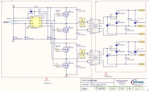 設計驗證表明,前級SEPIC非隔離穩壓,后級半橋隔離開環的拓撲結構,優于傳統的反激式單原邊多副邊的集中式電源,特別適合作為100kW量級的新能源乘用車逆變器的驅動電源,設計沒有采用往往不符合汽車標準的電源類專用集成芯片,而是采用具有AEC認證的汽車級通用分立器件,滿足了乘用車電子設計的苛刻要求。