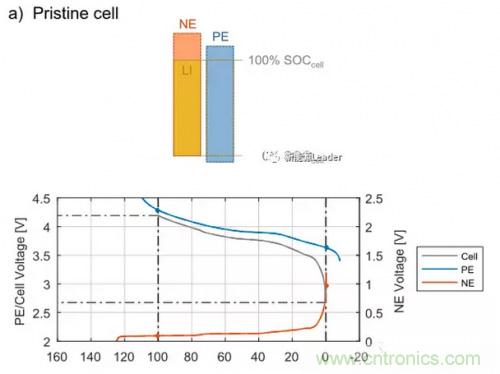 Christoph R. Birkl利用從某商業方形電池拆下的電極制作成了扣式電池,并模擬了三種鋰離子電池衰降模式:1)鋰損失;2)負極活性物質損失;3)正極活性物質損失。為了保證試驗的準確性,所有實驗電池都需要首先在恒溫箱里穩定3h,以達到熱平衡。在試驗中測得了兩種電壓,一種是在充放電過程中測得的電壓,這也倍稱作假電壓,假電壓可以用來輔助判斷鋰離子電池的衰降模式。而真正能夠對判斷鋰離子電池衰降模式的是鋰離子電池的開路電壓。
