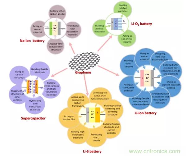 除了以上幾點,石墨烯相較于傳統(tǒng)碳材料還具有多種優(yōu)越性能,可能有助于促進各種新型電池系統(tǒng)的實際應用。新近研究報告指出,高能室溫鈉硫電池通過碳/硫復合材料作為電極。我們可以預料,石墨烯可以進一步幫助提升這類電池的性能。還有研究發(fā)現(xiàn),石墨烯基復合材料可作為鋅空氣電池的高效電催化劑。在種種結(jié)果之上,我們不難看出,石墨烯在未來能源儲存裝置應用中的巨大潛力。