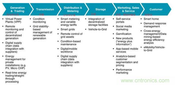 利用新的信息和通信技術來實現能源公司的產品和服務,價值鏈(從發電廠到消費者)以及內部支持功能(控制,采購,人力資源等)的綜合轉型,以滿足相關客戶的期望。