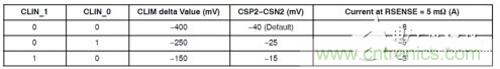 表2:5 m檢測(cè)電阻對(duì)應(yīng)的峰值過(guò)流保護(hù)值(反向過(guò)流保護(hù))