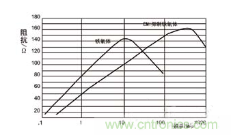 EMI抑制鐵氧體鐵氧體隨頻率變化的阻抗分量