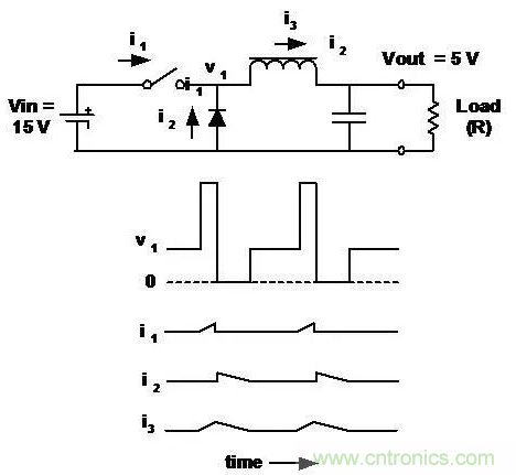 輸入電流不連續(xù) (斬波), 輸出電流連續(xù) (平滑)。