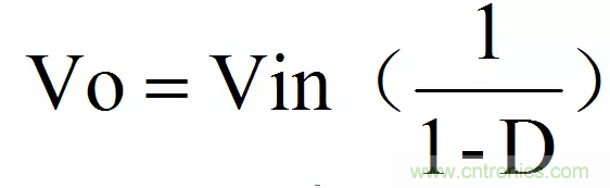 ■輸出電壓與負荷比(D)之間的關(guān)系不如在降壓調(diào)整器中那么簡單。在連續(xù)導電的情況下: