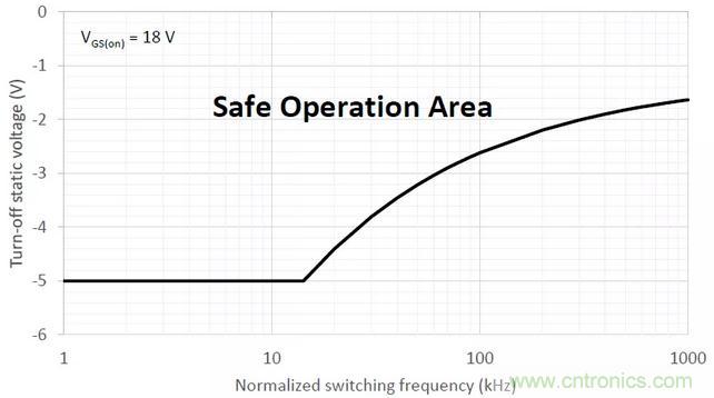 通過控制門極負壓Vgs(off),Vth漂移可以被限制在一個可接受的水平內。不論什么情況下,關斷電壓的上限都是0V,同時,關斷電壓的下限需要根據開通電壓、開關頻率、以及操作時間來選擇一個合適的值,使Rds(on)的增加限制在一定范圍之內。
