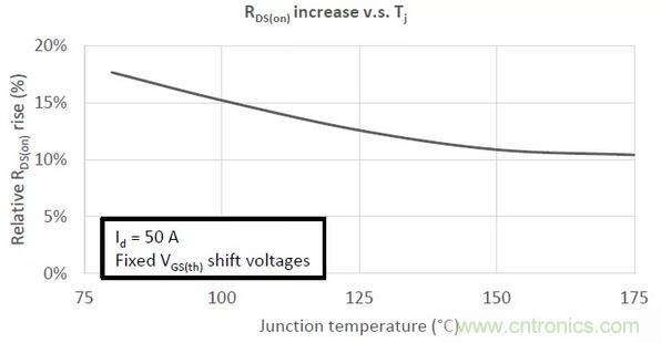 通常來說,15%的Rds(on)增量是最壞的情況。更大的增量只可能出現在高電流和低結溫的工況中,這在實際應用中十分罕見。