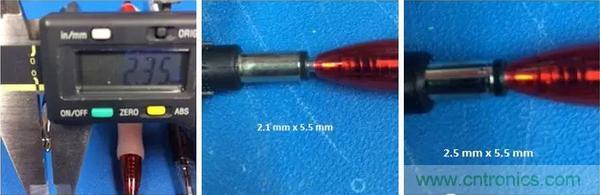 顯然,用一把尺子或者游標(biāo)卡尺(如果手邊有的話)來準(zhǔn)確測量或辨別2.1mm或者2.5mm的小孔內(nèi)徑是很難的。這就留給我們兩個選擇: