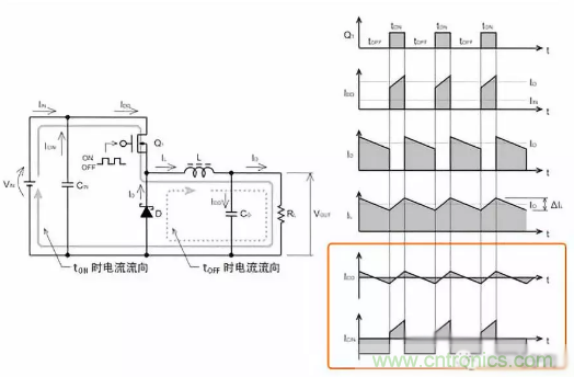 ?降壓轉(zhuǎn)換器中,瞬間輸入電流的最大值與輸出電流相同。