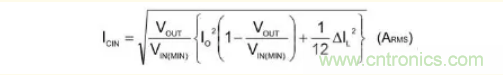 流向輸入電容器的紋波電流實效值ICIN用下列公式表示。