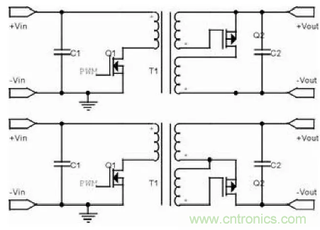 在電源轉換領域,輸出直流電壓不高的隔離式轉換器都使用 MOSFET作為整流器件。由於這些器件上的導通損耗較小,能夠提高效率因而應用越來越廣泛;