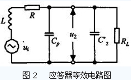 當RFID 的線圈天線進入讀寫器產生的交變磁場中,RFID 天線與讀寫器天線之間的相互作用就類似于變壓器,兩者的線圈相當于變壓器的初級線圈和次級線圈. 由RFID 的線圈天線形成的諧振回路如圖2所示,它包括RFID 天線的線圈電感L 、寄生電容Cp和并聯電容C2′,其諧振頻率為: