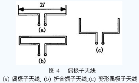 在遠距離耦合的RFID 應用系統中,最常用的是偶極子天線(又稱對稱振子天線) . 偶極子天線及其演化形式如圖4 所示,其中偶極子天線由兩段同樣粗細和等長的直導線排成一條直線構成,信號從中間的兩個端點饋入,在偶極子的兩臂上將產生一定的電流分布,這種電流分布就在天線周圍空間激發起電磁場.利用麥克斯韋方程就可以求出其輻射場方程: