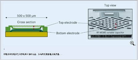 圖2:射頻-微機(jī)電系統(tǒng)的工作模式(圖中文字:頂電極和底電極之間的距離可臨時(shí)設(shè)置,從而改變電容值及阻抗值)