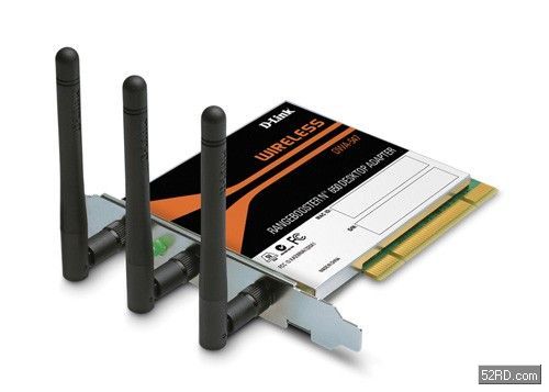 D-Link友訊的Pren/11n型無線網路卡:RangeBoosterN650DesktopAdapterDWA-547,圖中可看出三個直豎天線。