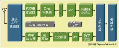 高動(dòng)態(tài)范圍A/D靠一個(gè)高速采樣時(shí)鐘提供時(shí)鐘信號(hào),所以在設(shè)計(jì)和布局階段必須仔細(xì)考慮基底噪音及RF前端的耦合噪聲。來(lái)自RF采樣時(shí)鐘諧波的干擾如果處在通道帶寬之內(nèi)的話,可能會(huì)降低接收器的性能。一旦信號(hào)實(shí)現(xiàn)了數(shù)字化,一個(gè)公共的硬件平臺(tái)可用來(lái)提取期望信號(hào),同時(shí)阻止干擾信號(hào)。幾項(xiàng)射頻功能,如直流偏移抵消、自動(dòng)增益控制和頻率偏移校正等,在實(shí)際的數(shù)據(jù)解調(diào)之前可以作為射頻的一部分被執(zhí)行。這減輕了對(duì)DSP指令運(yùn)算速度方面的要求,同時(shí)使無(wú)線電控制方式更加靈活。