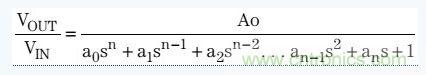 巴特沃茲濾波器傳輸函數(shù)包括所有極點,并且沒有零,其表達式如下: