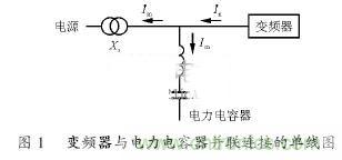 電力電容器由于諧波引起并聯諧振,則有異常電流流入電容器,其結果是導致電容器過熱,絕緣層被破壞。通常,當電源阻抗充分小(電源設備容量大)時產生的故障很少,但要考慮高次諧波對低壓電力電容的影響,因此可使用帶6豫串聯電抗器的電力電容器來減小諧波干擾,電抗器與電力容器、變頻器連接圖如圖1所示。