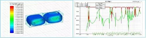 通過以上電場分布圖可以觀察到,單腔雙模,單腔三模可以自由選擇。在高次模出現的頻率點上,通過選擇介電常數,與控制諧振腔尺寸,對高次模進行優化。盡量拉遠高次模出現的頻率,減小對通帶的影響。