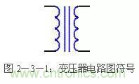通常直流穩壓電源使用電源變壓器來改變輸入到后級電路的電壓。電源變壓器由初級繞組、次級繞組和鐵芯組成。初級繞組用來輸入電源交流電壓,次級繞組輸出所需要的交流電壓。通俗的說,電源變壓器是一種電→磁→電轉換器件。即初級的交流電轉化成鐵芯的閉合交變磁場,磁場的磁力線切割次級線圈產生交變電動勢。次級接上負載時,電路閉合,次級電路有交變電流通過。變壓器的電路圖符號見圖2-3-1。
