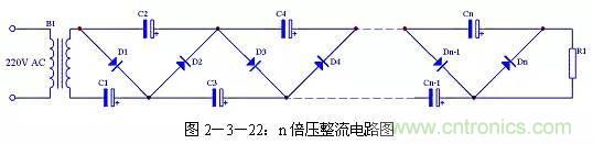 二倍壓電路還可以很容易的擴展為n倍壓電路,具體電路見圖2-3-22。