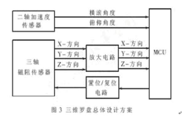 - 三維電子羅盤的總體設(shè)計(jì)。