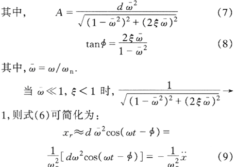 可見(jiàn)質(zhì)量塊m相對(duì)于機(jī)座的位移xr與機(jī)座的加速度成正比.此時(shí)可以通過(guò)測(cè)量質(zhì)量塊的位移變化來(lái)測(cè)量振動(dòng)的加速度.