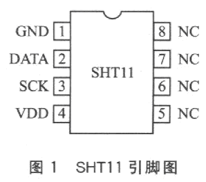 溫濕度傳感器SHTll集溫度傳感器和濕度傳感器于一體,因此采用SHTll進行溫濕度實時監測的系統具有精度高、成本低、體積小、接口簡單等優點;另外SHTll芯片內部集成了14位A/D轉換器,且采用數字信號輸出,因此抗干擾能力也比同類芯片高。該芯片在溫濕度監測、自動控制等領域均已得到廣泛應用。