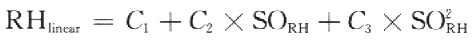 式中:RHincar為經過線性補償后的濕度值,SORH為相對濕度測量值,C1、C2、C3為線性補償系數,取值如表2所列。