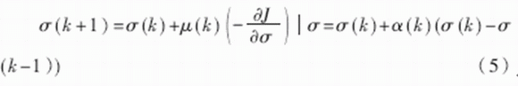 其中,μ(k)為學(xué)習(xí)率,α(k)為動(dòng)量因子,也稱(chēng)為遺忘因子,又稱(chēng)動(dòng)量項(xiàng)或阻尼項(xiàng)。將其稱(chēng)為遺忘因子可從對(duì)于新舊信息的學(xué)習(xí)與遺忘的角度來(lái)理解;稱(chēng)為動(dòng)量項(xiàng)或阻尼項(xiàng)是因?yàn)樵诰W(wǎng)絡(luò)的學(xué)習(xí)訓(xùn)練中,此項(xiàng)相當(dāng)于阻尼力,當(dāng)訓(xùn)練誤差迅速增大時(shí),它使網(wǎng)絡(luò)發(fā)散得越來(lái)越慢??傊?,它使網(wǎng)絡(luò)的變化趨于穩(wěn)定,有利于網(wǎng)絡(luò)的收斂。