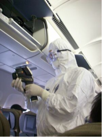 2009年4月29日晨5點58分,甲型H1N1流感擴散以來首架抵達中國的墨西哥航班AM098航班降落于浦東機場。旅客下機之前,檢驗檢疫人員身穿防護服,手持德圖精密型紅外測溫儀testo845,登機對所有乘客進行體溫檢測。