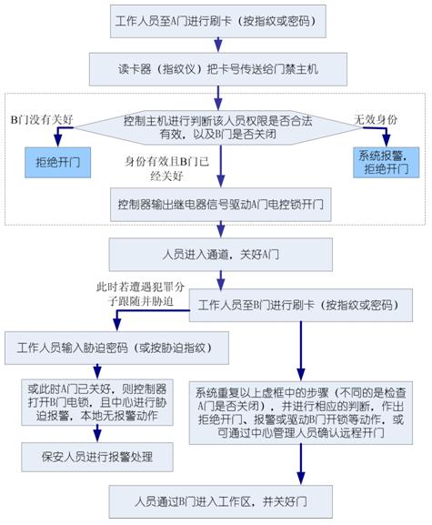 根據(jù)不同場所要求,本系統(tǒng)可以擴展為ABC三門以及更多門的多門互鎖門禁,來達到更高級別的安全要求。還可以配合中心遠程控制,來實現(xiàn)本地確認開門及中心遠程開門相結(jié)合的AB互鎖雙門門禁。系統(tǒng)功能特點如下: