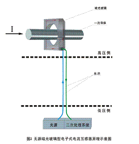 無源磁光玻璃型電子式電流互感器特點(diǎn)是一次傳感器為磁光玻璃,無需電源供電。其原理如下圖所示: