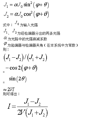 法拉第磁光效應(yīng):如果通過一次導(dǎo)線的電流為i,導(dǎo)線周圍所產(chǎn)生的磁場強(qiáng)度為H,當(dāng)一束線偏陣光通過該磁場時(shí),線偏陣光的偏振角度會發(fā)生偏振,其偏振角θ的計(jì)算公式為: