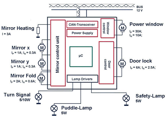 車門模塊中的負載特性和功能千差萬別。系統設計師面臨的挑戰是如何高效地驅動所有負載并且同時滿足設計規范要求和成本目標。