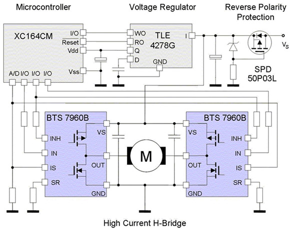 - 采用BTS7960這樣的智能半導體器件